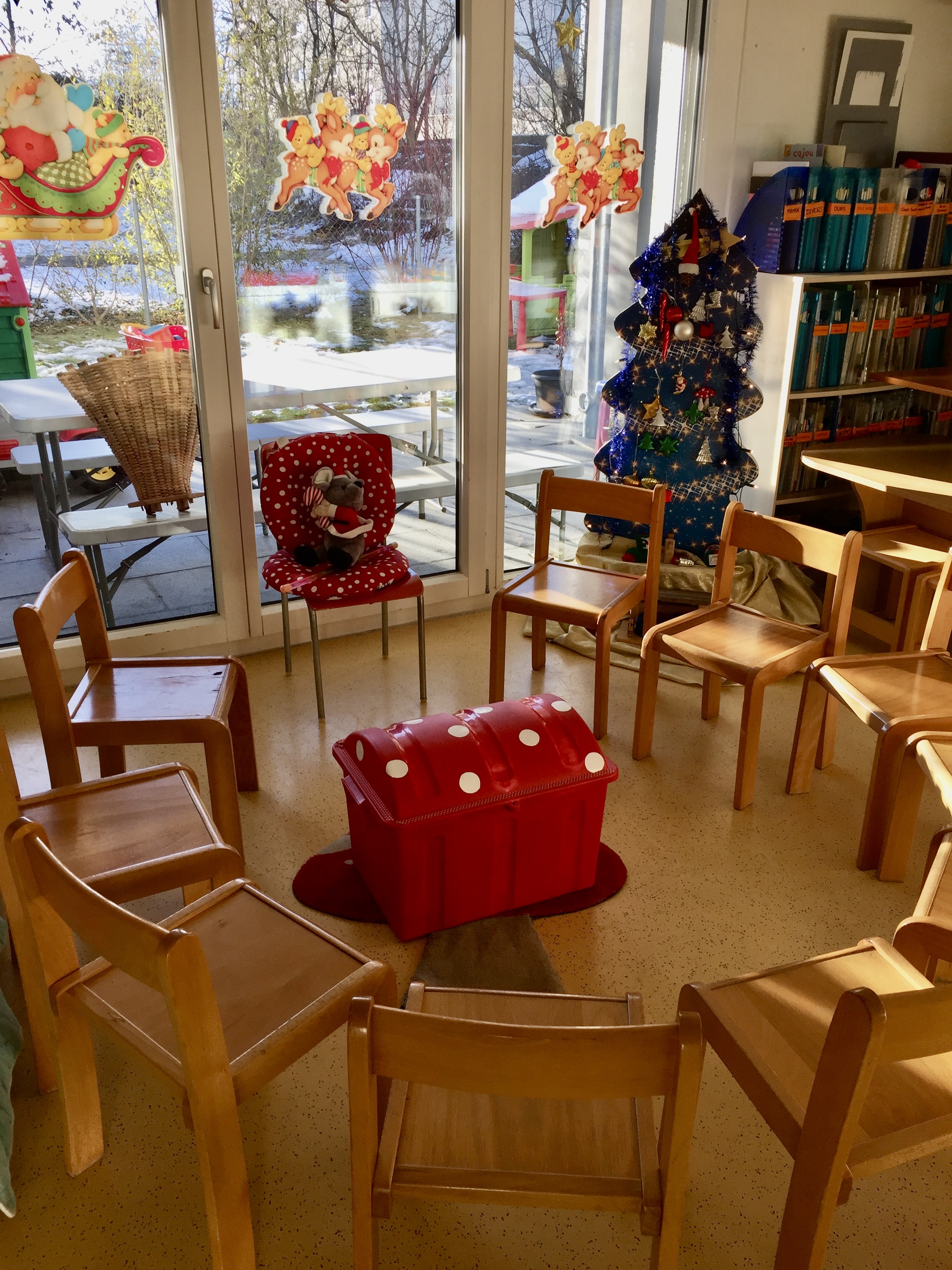 Dès 11h10 : Les parents arrivent et viennent chercher leur enfant à la porte du jardin. La stagiaire s’occupe des jeux et l’éducatrice discute avec les parents sur le déroulement de la matinée et distribue les dessins ou autres bricolages.