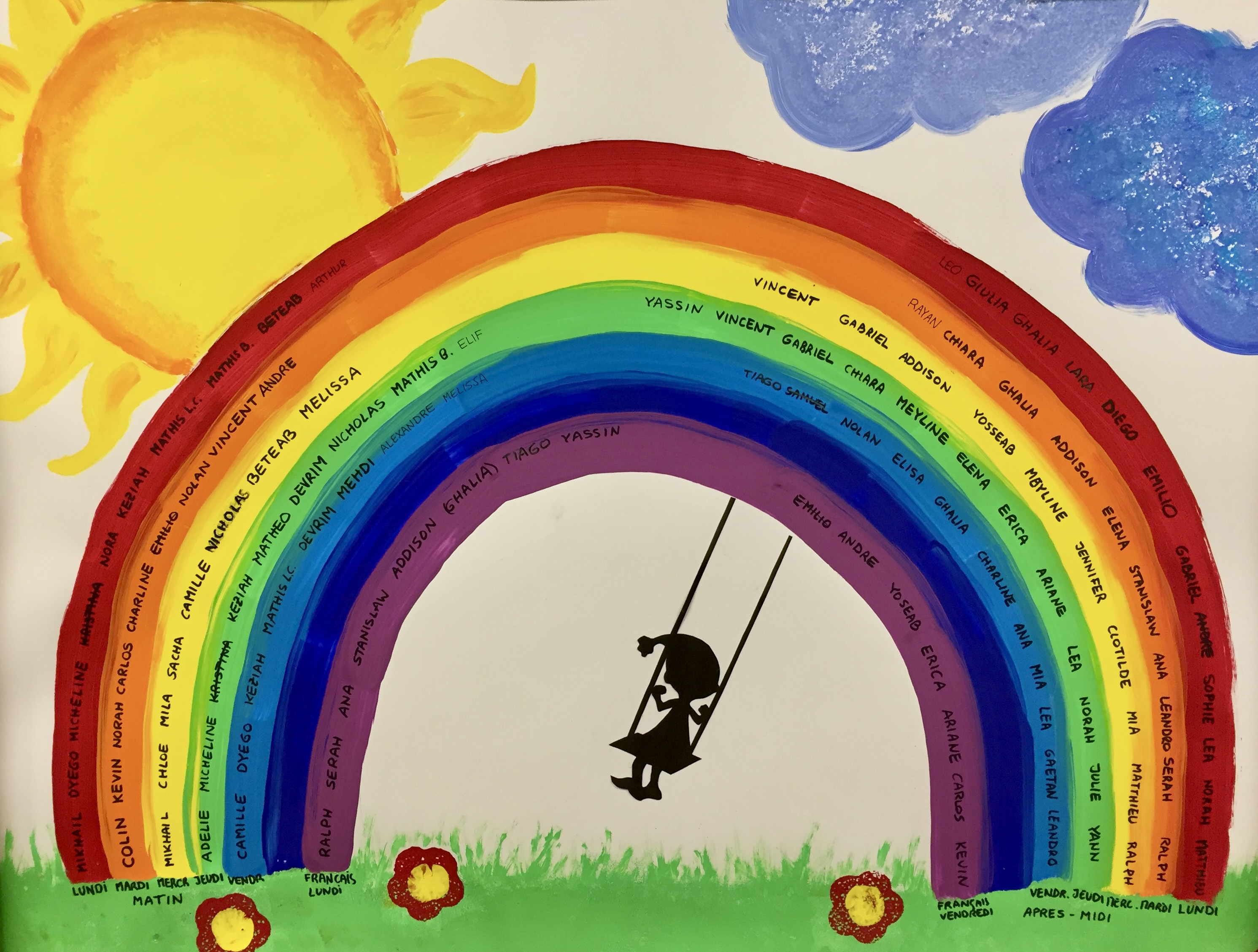 Ranger et s’asseoir « en chambrette »pour regarder les photos des présences et chanter.