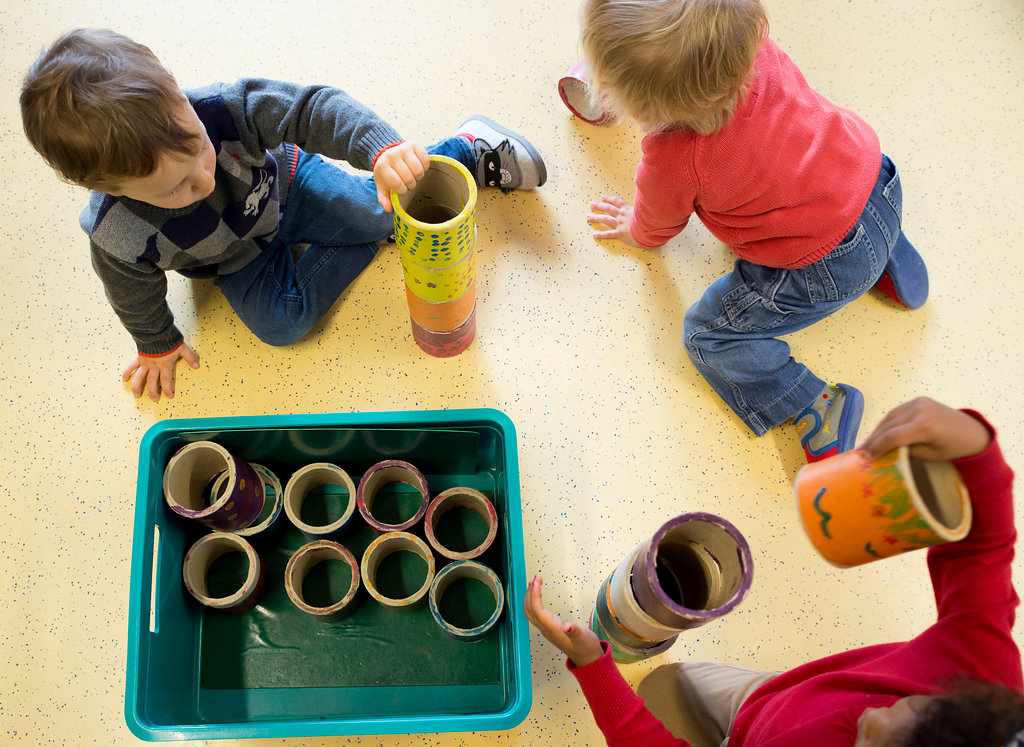 Par les jeux libres à choix dans les différents coins de jeux, les enfants apprennent à être en contact avec d’autres enfants du même âge, tous différents dans leurs développements. Ils font des jeux parallèles, ils ne collaborent pas mais jouent côte à côte en s’imitant et en se donnant des idées. Peu à peu, ils mettent en place le début de la collaboration. L’éducatrice joue avec eux ou observe au milieu d’eux, en suscitant de nouvelles actions, en aidant à résoudre des conflits, en intervenant pour que chacun ait sa place.