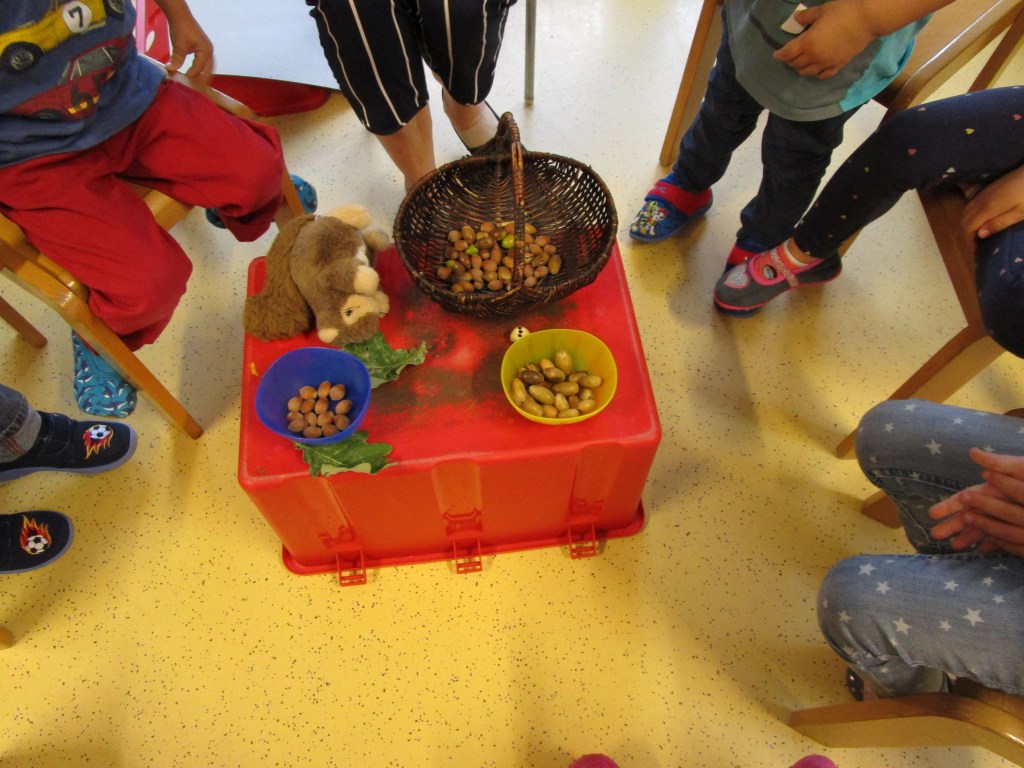 L’éducatrice propose des petits moments où elle amène à découvrir quelque chose par les sens. Par la vue (voir et nommer), par l’ouïe (écouter et chanter avec), par le toucher (matériel et matières diverses), par le goût et l’odorat (nourriture et saveurs). L’enfant expérimente librement le matériel proposé sans faire de jeu intellectuel. L’éducatrice verbalise ce que l’enfant fait et découvre.